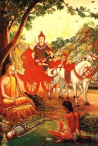 อยู่ที่ทรงเห็นสิ่งที่เรียกว่า เทวทูตทั้ง ๔ ระหว่างทางในวันเสด็จประพาสพระราชอุทยานนอกเมืองด้วยรถม้าพระที่นั่ง